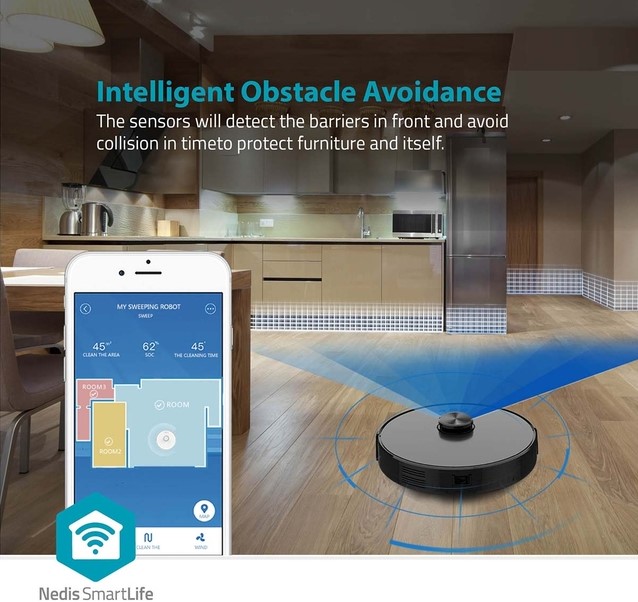 Robotstofzuiger Nedis Smartlife wifi laser 3-in-1 zwart