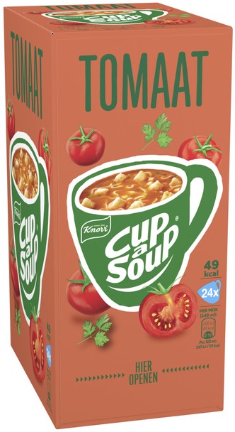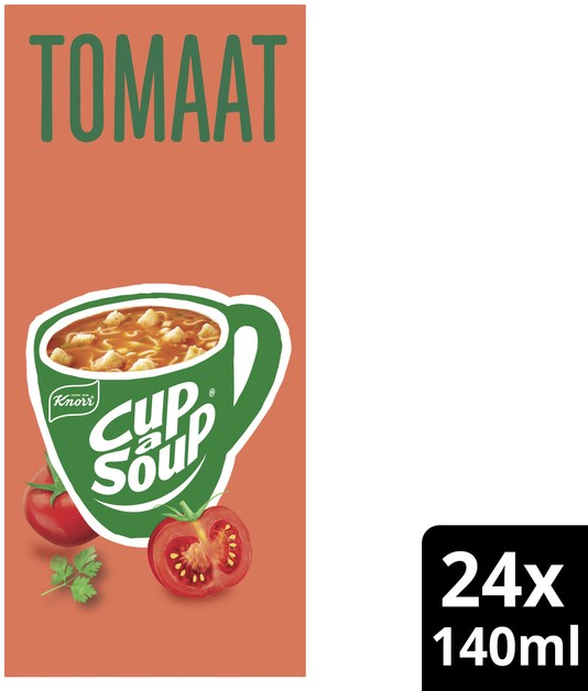 • Deze heerlijke soep is gemaakt met duurzaam geteelde tomaten, en dat proef je! In een verpakking Cup-a-Soup Tomaat zitten 24 heerlijke zakjes Cup-a-Soup.
