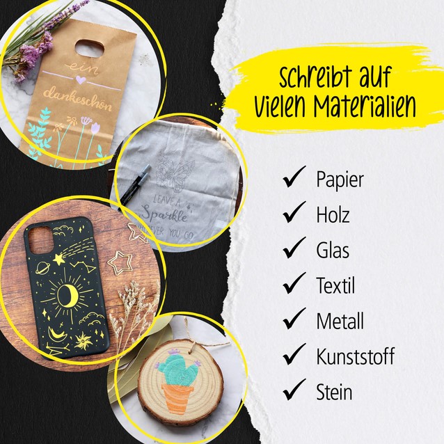 • Geschikt voor gebruik op papier, karton, zwart papier en meer