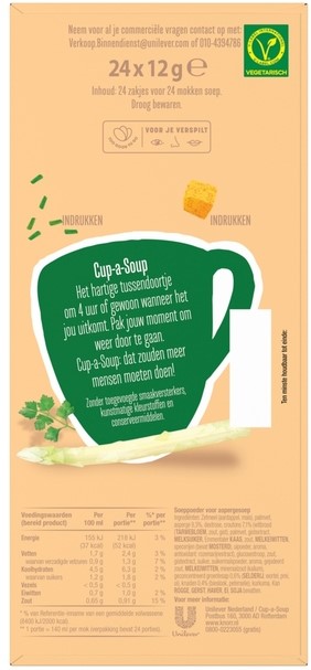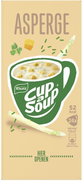 • Cup-a-Soup Asperge: een snelle, hartige opkikker die je weer energie geeft om door te gaan! Deze heerlijke soep is gemaakt met duurzaam geteelde asperges, en dat proef je!