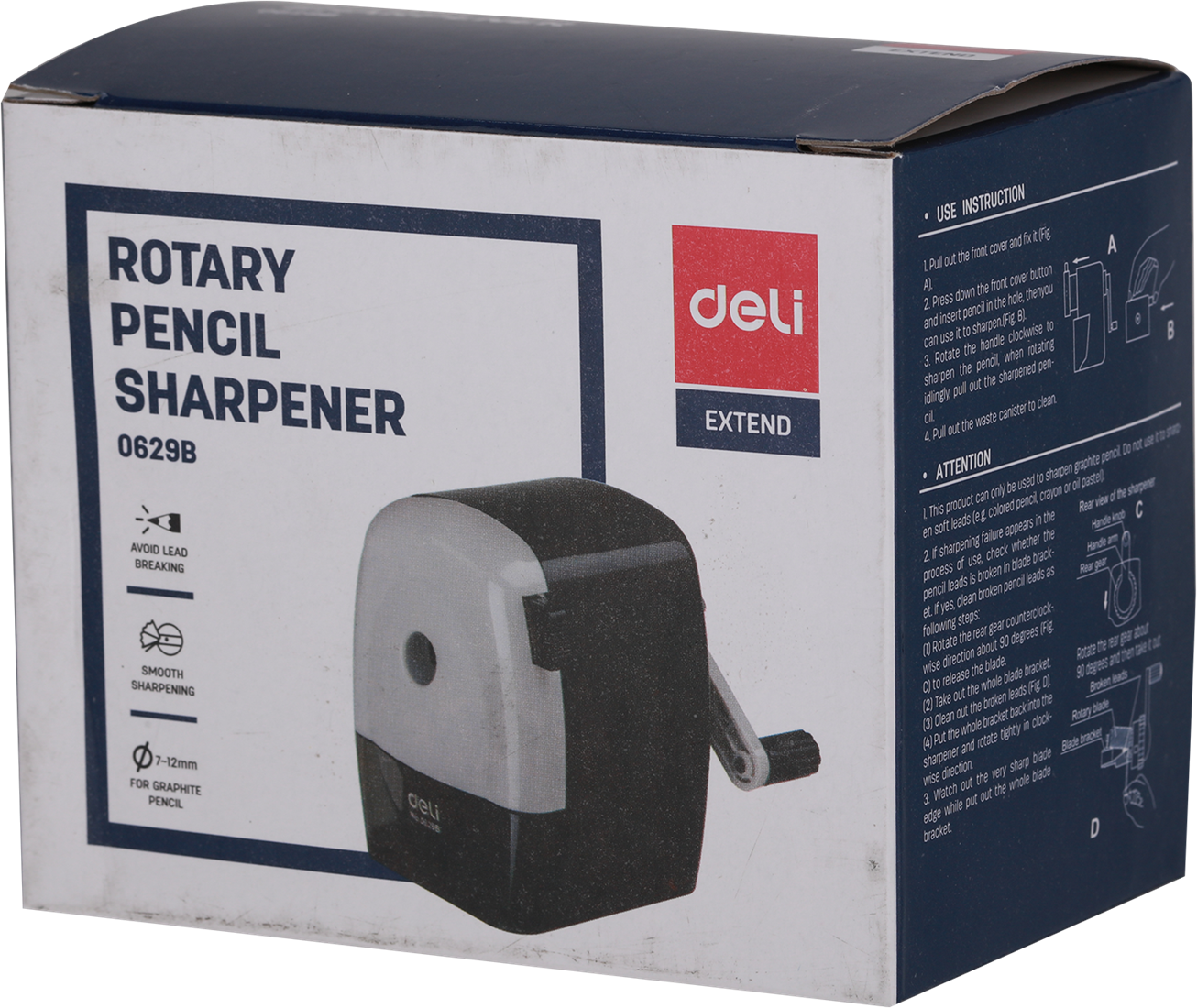 Rotary puntenslijper is een compacte en veelzijdige tafelslijper voor zowel standaard als jumbo grafietpotloden. Dankzij de instelbare punt bepaal je zelf hoe scherp het potlood wordt, van fijn tot stomp.
