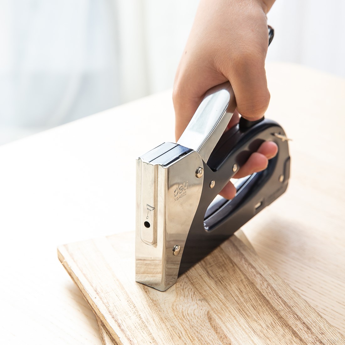 Tacker / nietpistool set – blauw is een robuuste handtacker voor het vastzetten van materialen tot 10 mm dikte. Geschikt voor uiteenlopende bevestigingsklussen waarbij kracht en betrouwbaarheid belangrijk zijn.