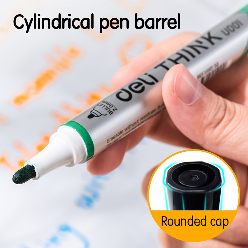 De markers zijn voorzien van een ronde bullet tip van 2,0 mm, waarmee je strakke en goed leesbare lijnen zet. De inkt is eenvoudig uitwisbaar en laat geen resten achter op het whiteboard. Dankzij de lage geur en niet-giftige inkt zijn de markers prettig in gebruik, ook bij langdurig schrijven. De PP-behuizing zorgt voor een comfortabele grip en goede duurzaamheid.