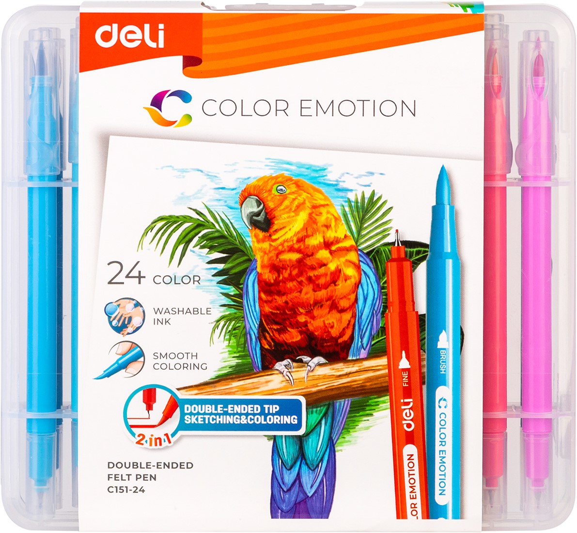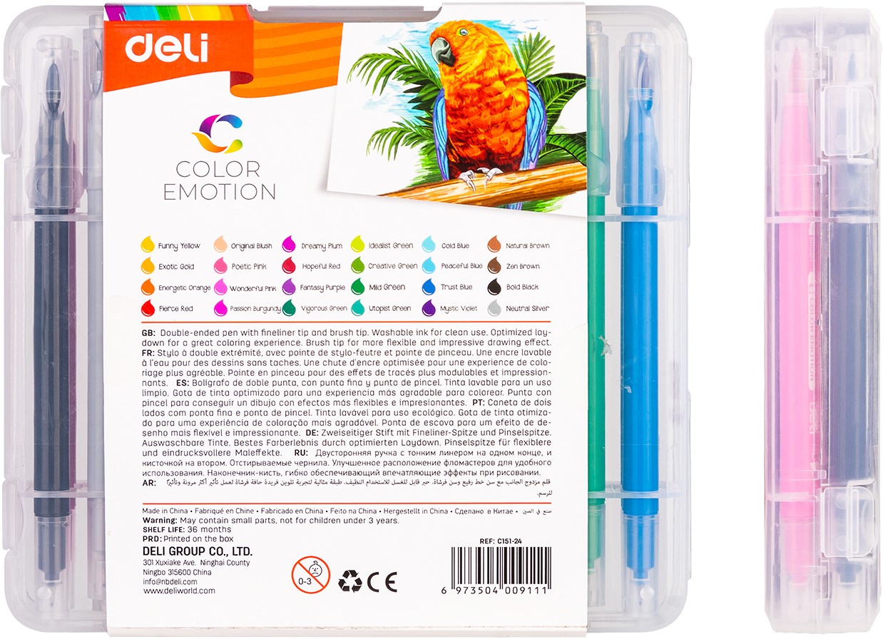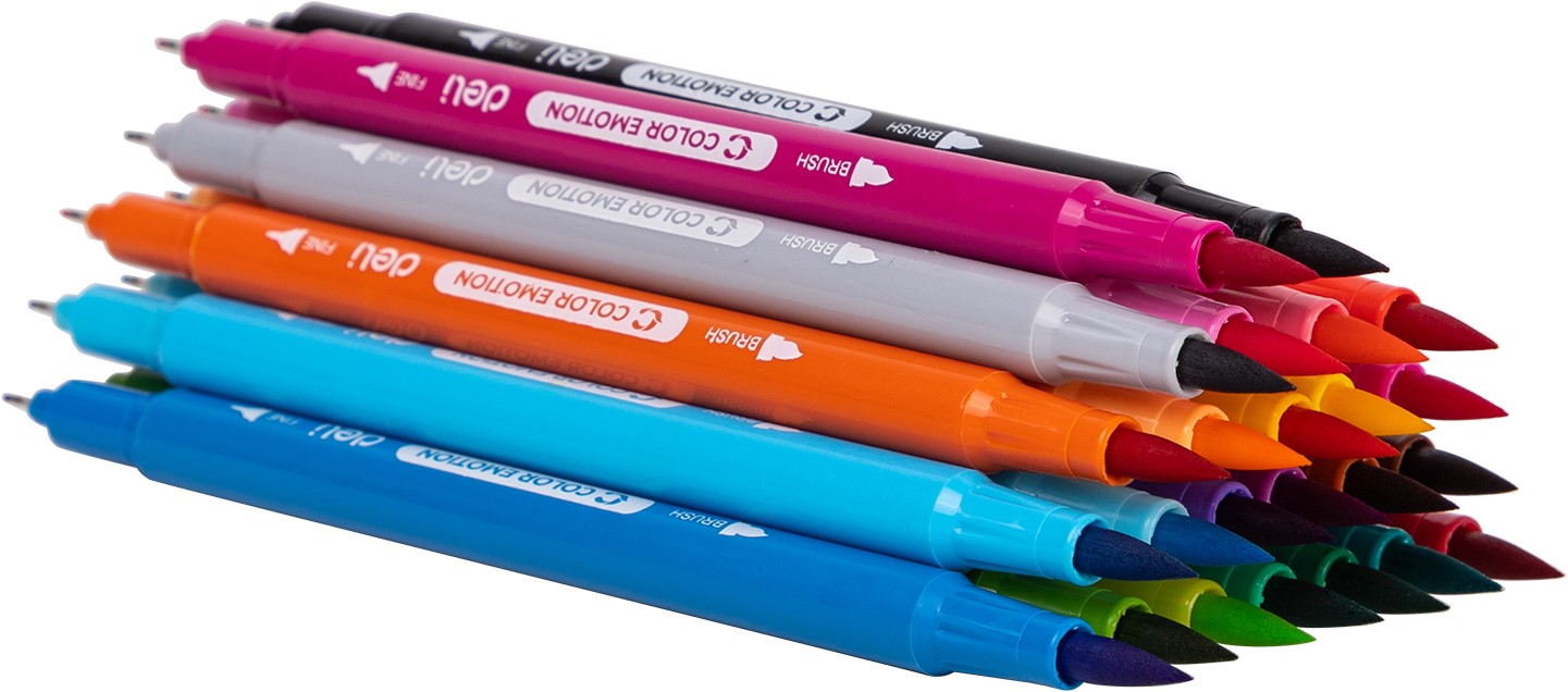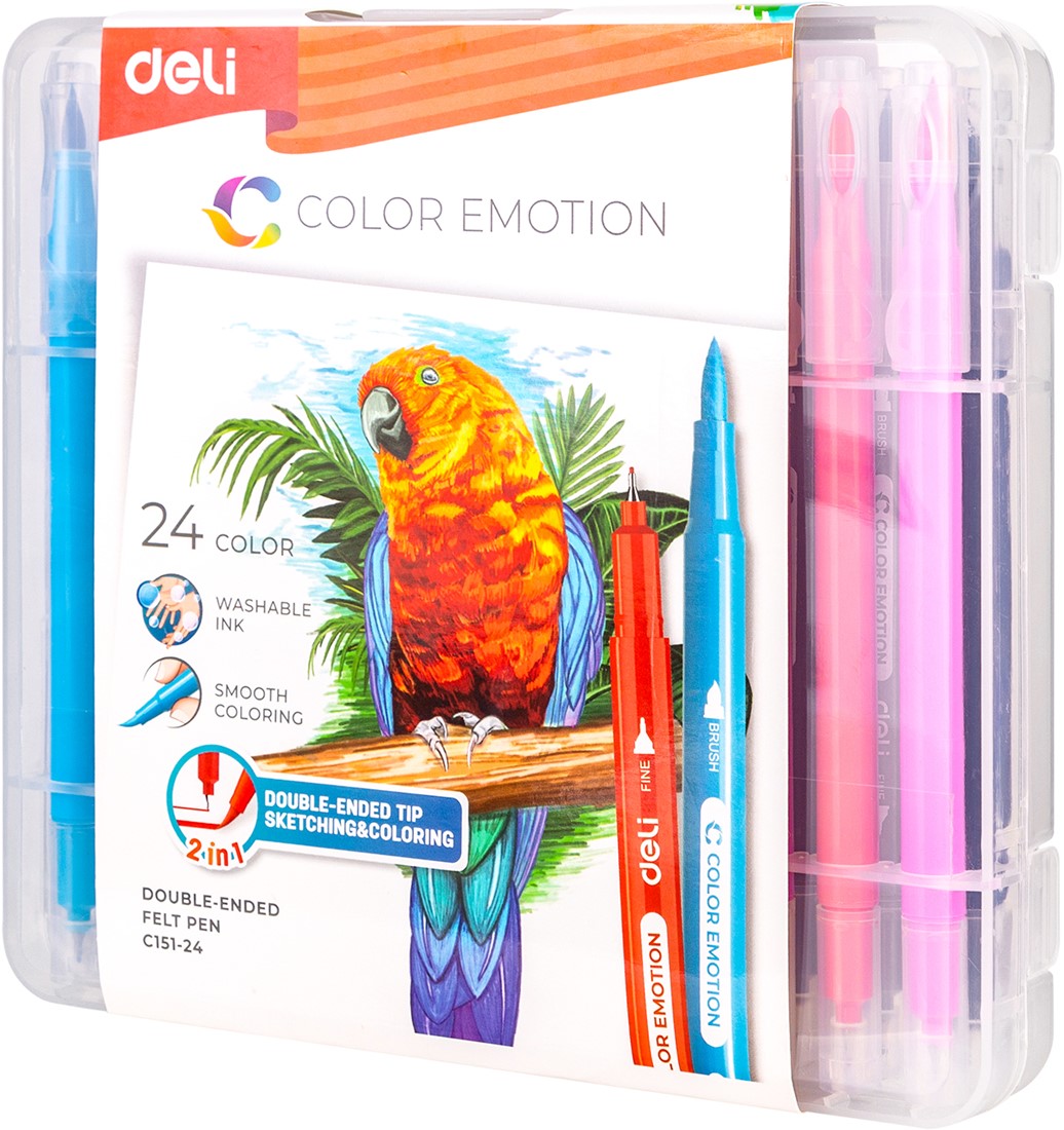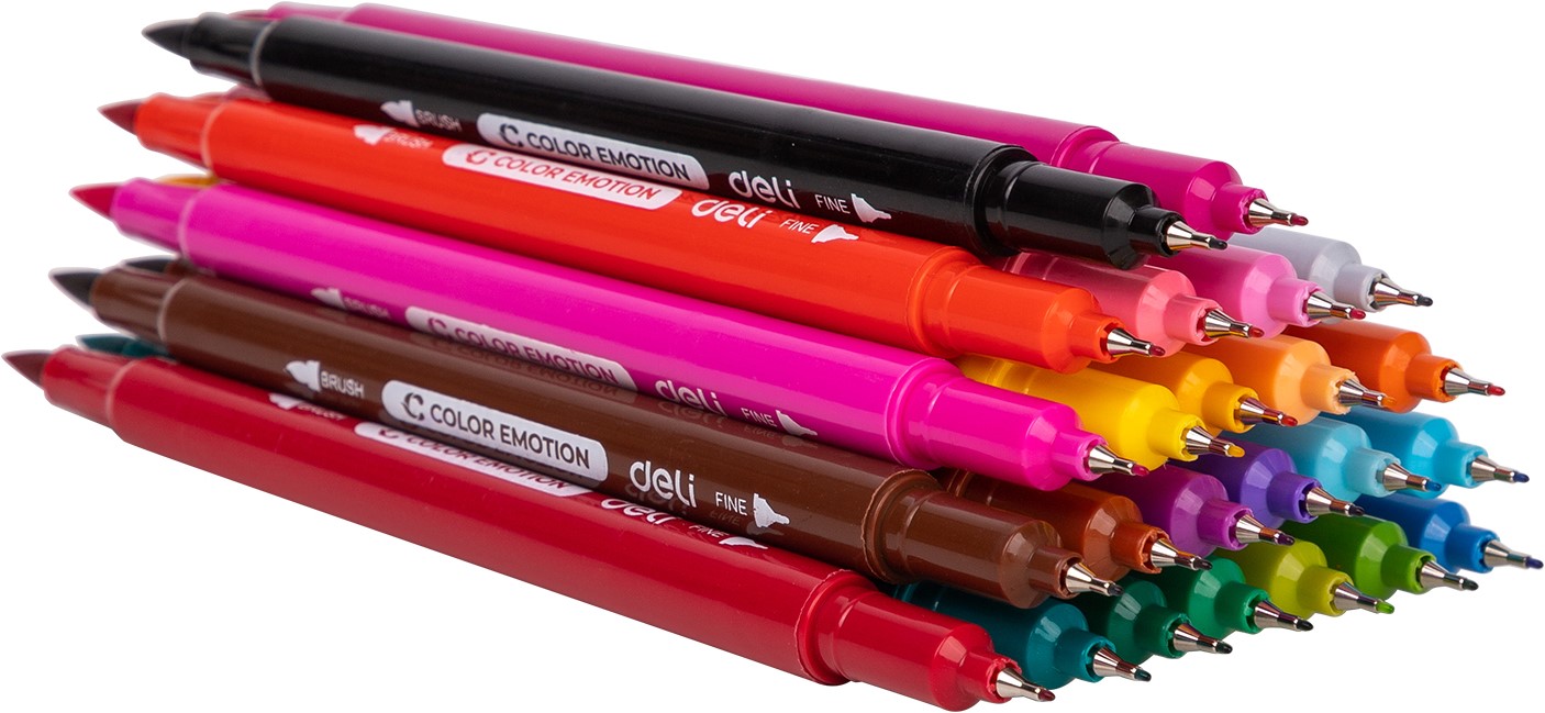 COLOR EMOTION viltstiften – 24 kleuren zijn veelzijdige 2-in-1 stiften voor tekenen én kleuren. Elke stift combineert een fijne liner met een flexibele brush tip, ideaal voor detailwerk en grotere kleurvlakken.