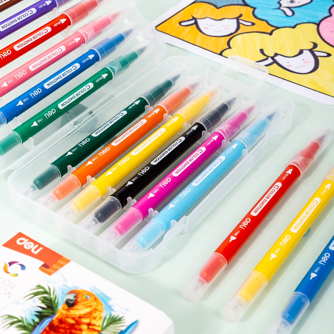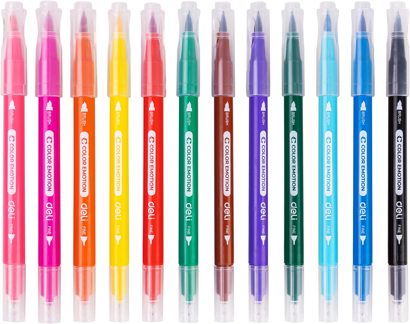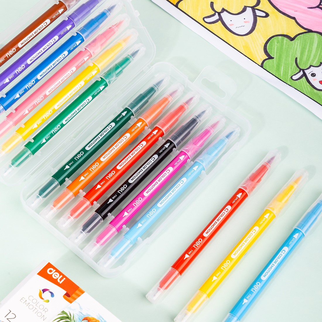 COLOR EMOTION viltstiften – 12 kleuren zijn veelzijdige 2-in-1 stiften voor tekenen én kleuren. Elke stift combineert een fijne liner met een flexibele brush tip, ideaal voor detailwerk en grotere kleurvlakken.