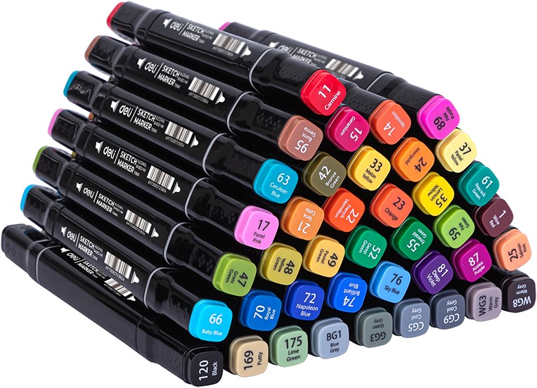 Color Emotion sketch markers – 40 kleuren zijn veelzijdige markers voor schetsen, illustreren en kleuren. Deze set biedt een ruime keuze aan kleuren en is geschikt voor zowel detailwerk als grotere kleurvlakken.