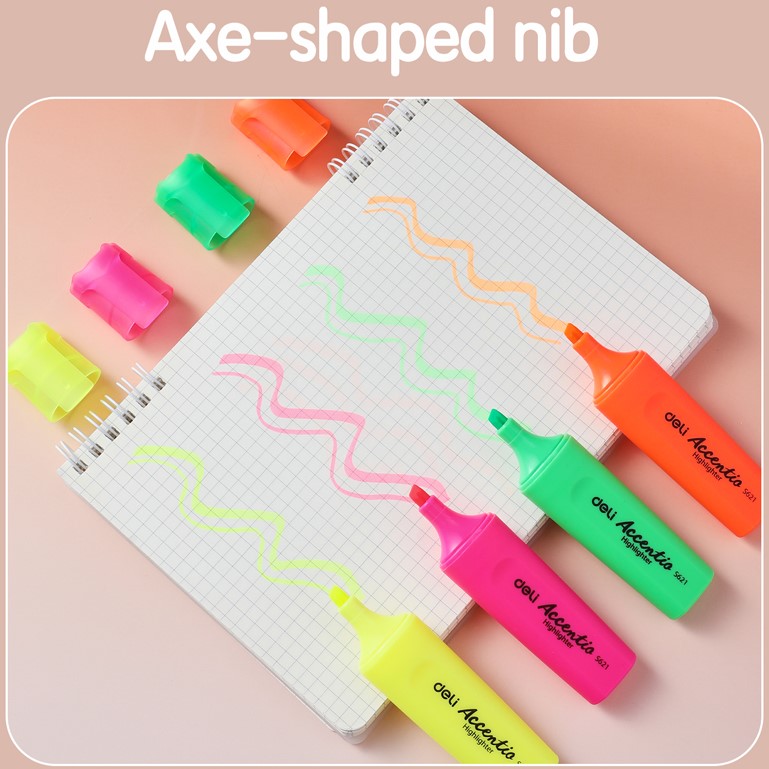 De markeerstift is voorzien van een beitelpunt van 1–5 mm, waarmee je zowel dunne als brede markeringen aanbrengt. De fluorescerende inkt is extra helder, sneldrogend en bestand tegen vervagen, zodat gemarkeerde tekst goed zichtbaar blijft. De inkt is niet-giftig en prettig in gebruik. Dankzij de clip neem je de markeerstift eenvoudig mee of bevestig je hem aan een schrift of map.