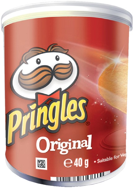 • Pringles hebben een vorm die lijkt op die van aardappelchips, maar ze worden, net als veel andere chips, gemaakt door aardappelpuree met een vorm samen te persen.