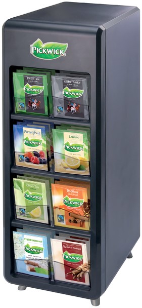 • De Pickwick 8-vaks theedispenser is gevuld met 8 verschillende theesmaken en past perfect naast uw koffiemachine.