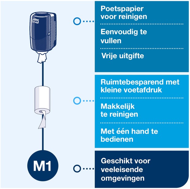 Poetspapierdispenser Tork M1 Elevation klein wit 558000