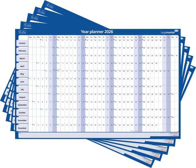 Jaarplanner 2026 Legamaster 90x60cm horizontaal gelamineerd Engelstalig