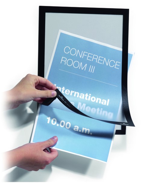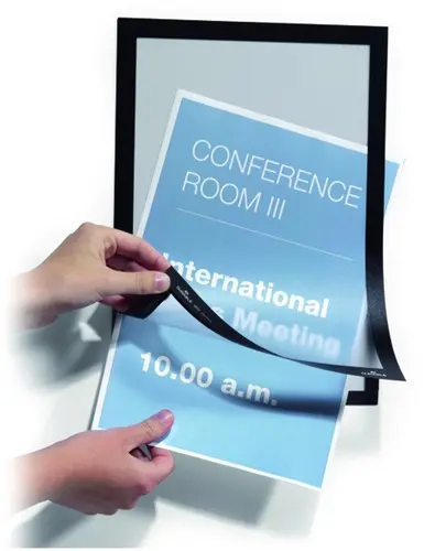 • Duraframe is een zelfklevend kader, bestaande uit twee transparante folies die samen worden gehouden door de magnetische rand.