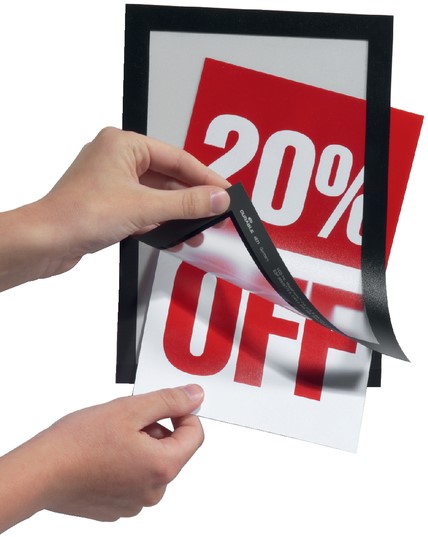 • Duraframe is een zelfklevend kader, bestaande uit twee transparante folies die samen worden gehouden door de magnetische rand.