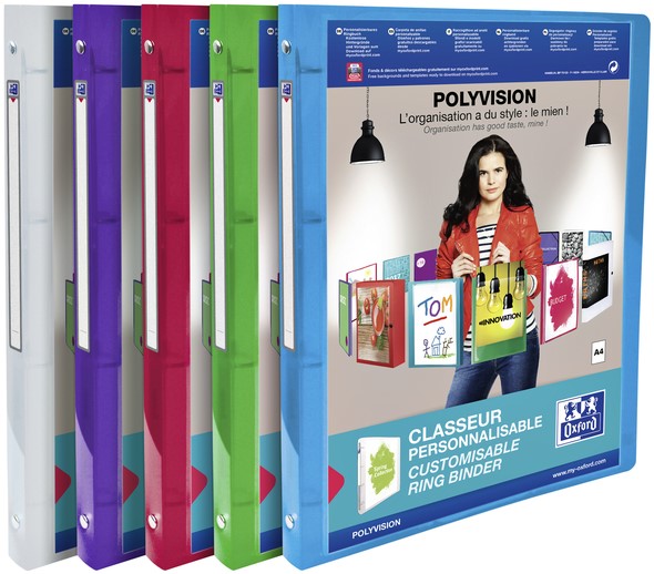 Presentatieringband Oxford Polyvision A4 4-rings O-mech 20mm assorti