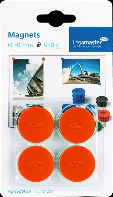 Magneet Legamaster 30mm 850gr rood 4 stuks
