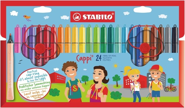 Viltstift STABILO Cappi 168/24 medium assorti etui à 24 stuks