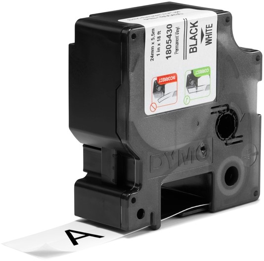 Labeltape Dymo Rhino industrieel vinyl 24mm zwart op wit