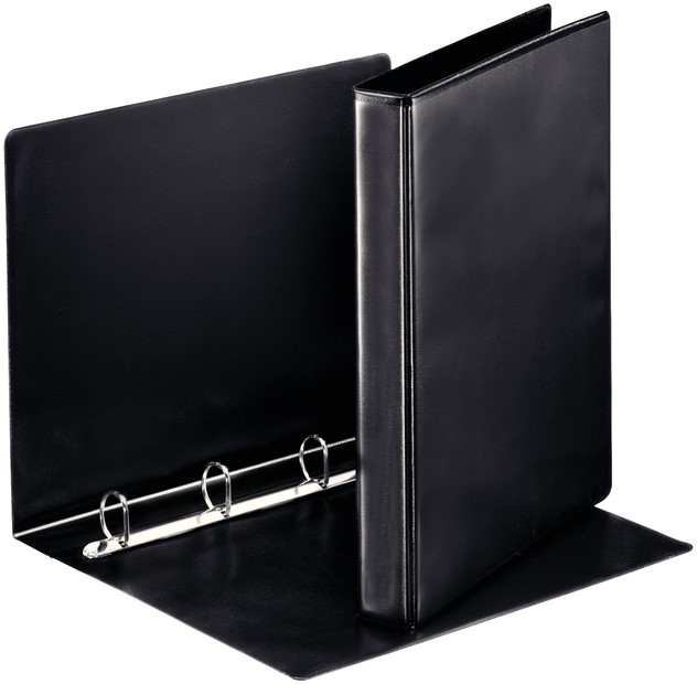 • Deze zwarte ringband met lederen uitstraling is perfect voor personalisatie dankzij de insteekmappen aan de voor- en achterkant. Gebruik deze 4 rings map om je documenten netjes op te bergen en geef je presentatie of verslag een professionele en verzorgde uitstraling. Combineer met showtassen en tabbladen voor extra organisatiemogelijkheden.
