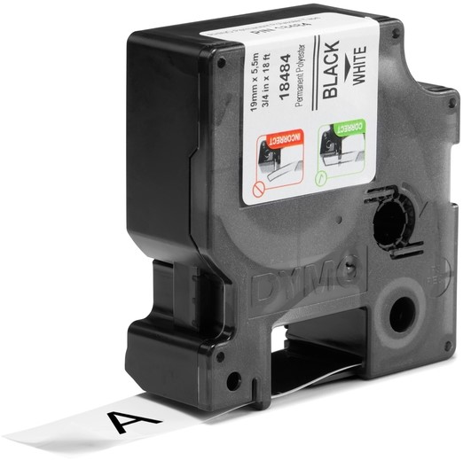 Labeltape Dymo Rhino industrieel polyester 19mm zwart op wit