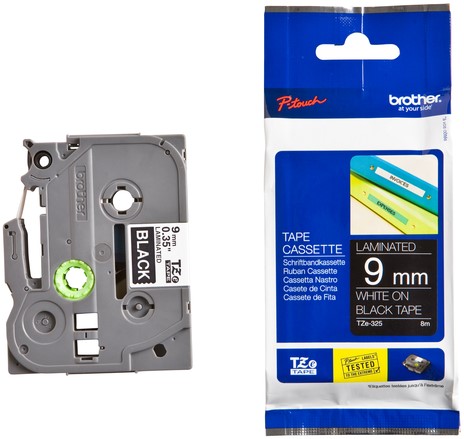 Labeltape Brother P-touch TZe-325 standaard 9mm wit op zwart