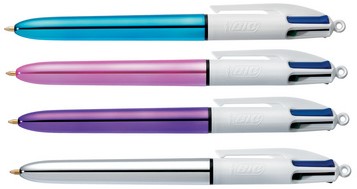 Balpen Bic 4kleuren shine medium zilver/paars/roze/blauw