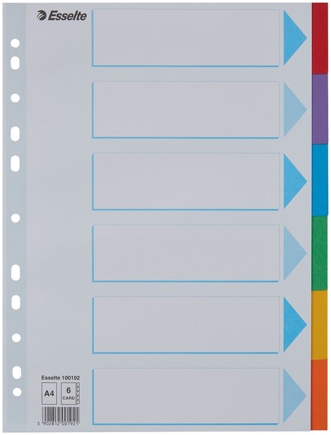 Tabbladen Esselte Standaard A4 6-delig karton 11-rings met voorblad assorti
