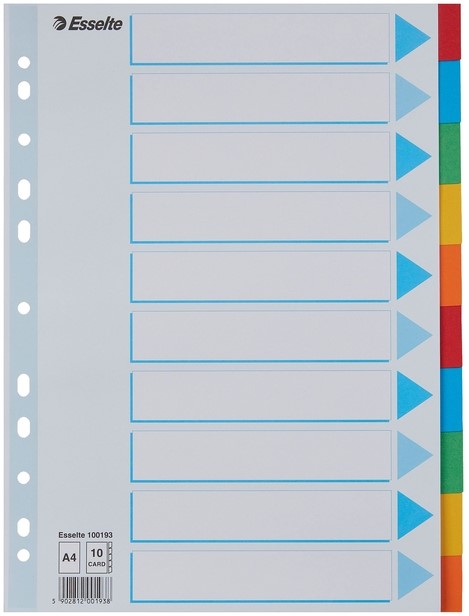Tabbladen Esselte Standaard A4 10-delig karton 11-rings met voorblad assorti