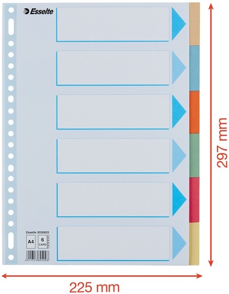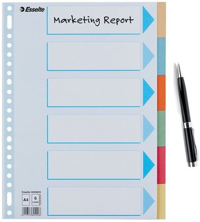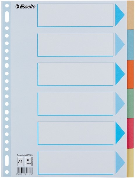 Tabbladen Esselte Premium A4 6-delig karton 23-rings assorti