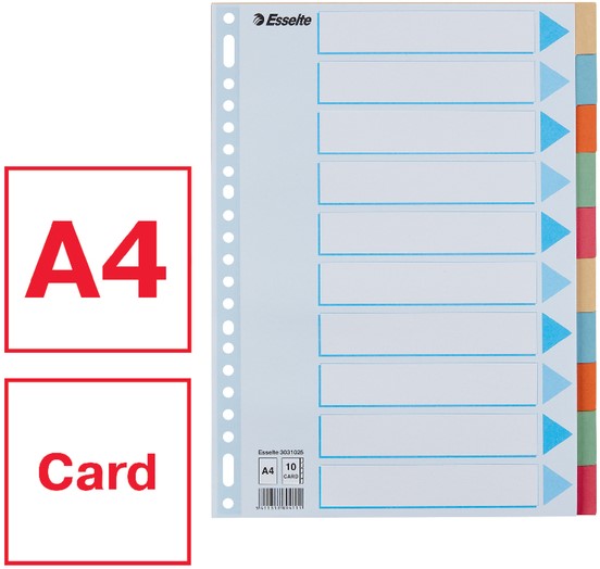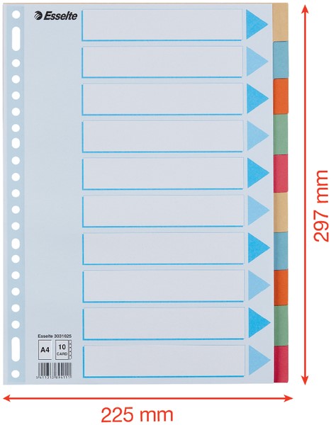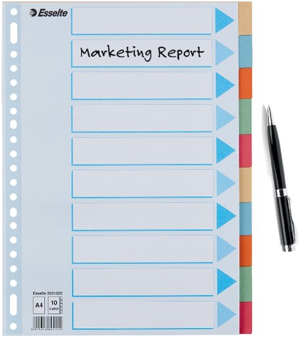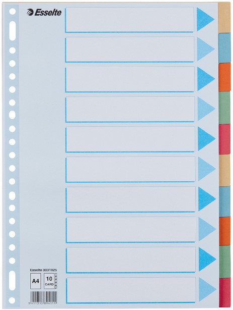 Tabbladen Esselte Premium A4 10-delig karton 23-rings assorti