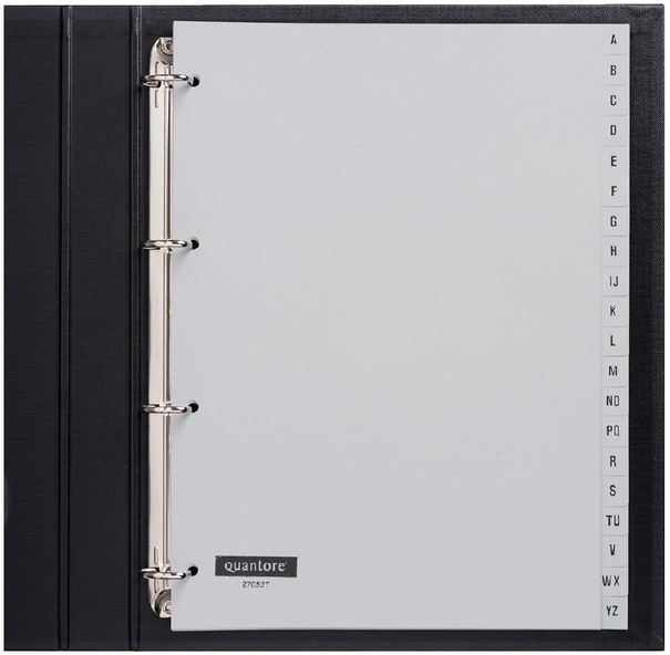 Tabbladen Quantore 4-gaats 20-delig met alfabet grijs PP