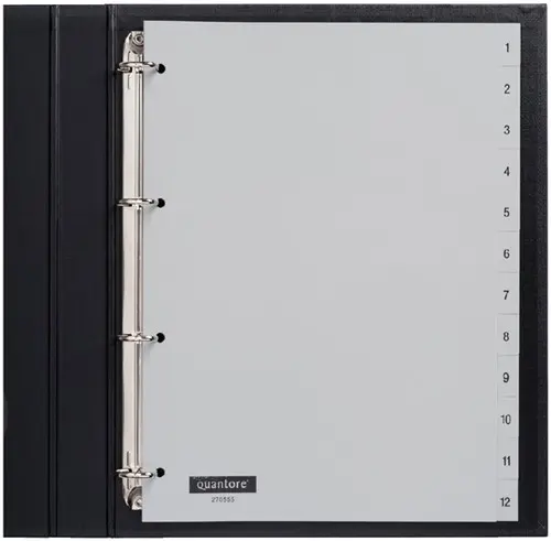 Tabbladen Quantore 4-gaats 1-12 genummerd grijs PP