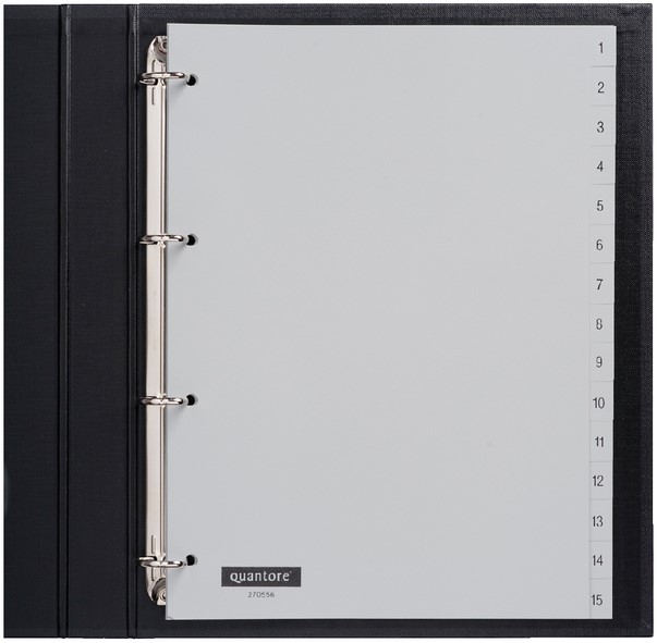 Tabbladen Quantore 4-gaats 1-15 genummerd grijs PP