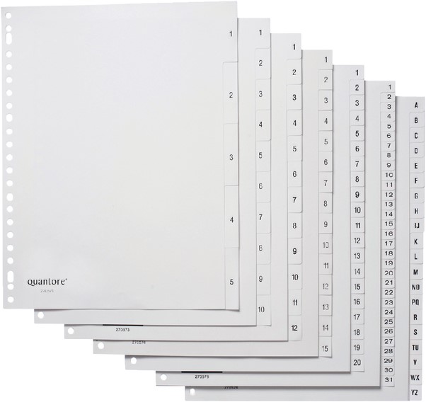 Tabbladen Quantore 23-gaats 1-5 genummerd wit PP