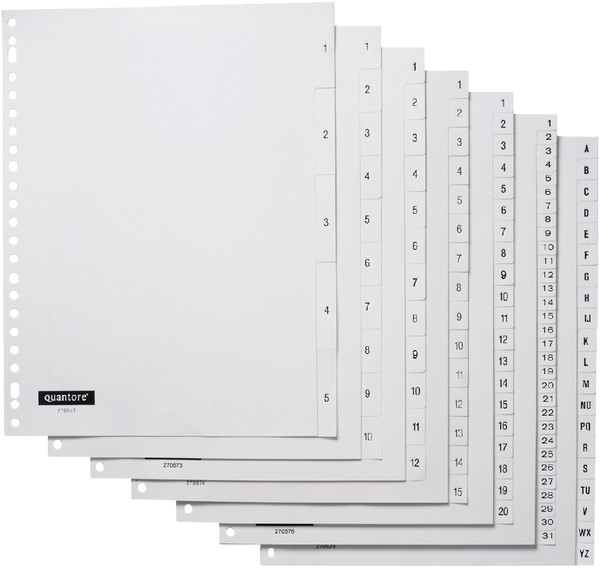 Tabbladen Quantore 23-gaats 1-12 genummerd wit PP
