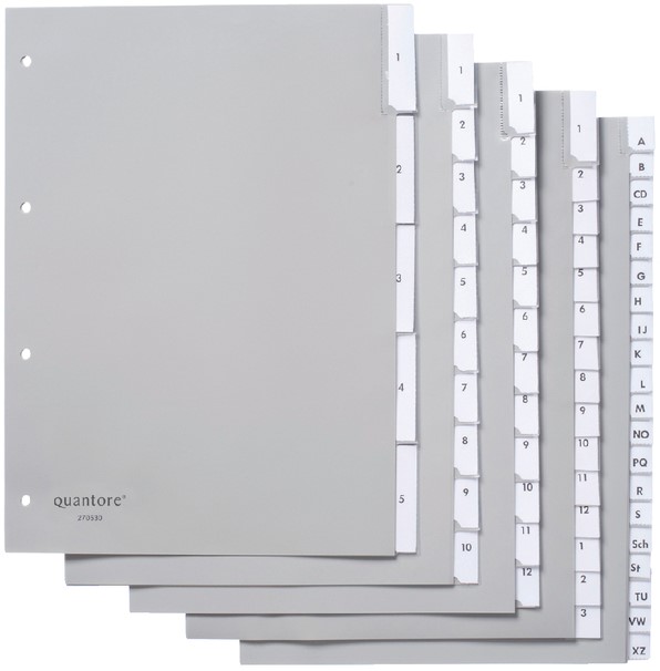Tabbladen Quantore 4-gaats 15-delig met venster grijs PP