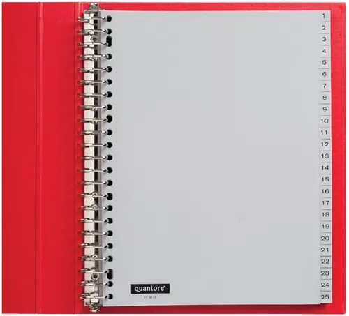 • Voor maximale structuur in grote documentverzamelingen zijn de Quantore tabbladen 23-gaats 1-100 genummerd grijs de perfecte keuze. Deze robuuste tabbladen zijn vervaardigd uit grijs polypropyleen en bieden langdurige stevigheid, zelfs bij intensief gebruik. De tabs zijn duidelijk genummerd van 1 tot 100 en eenzijdig zwart bedrukt, zodat je razendsnel de juiste sectie vindt. Met de universele 23-gaats perforatie passen ze moeiteloos in vrijwel elke ringband of ordner. Ideaal voor omvangrijke archieven, opleidingsmateriaal, jaaroverzichten of projectfaseringen waarin overzicht essentieel is.Kenmerken: