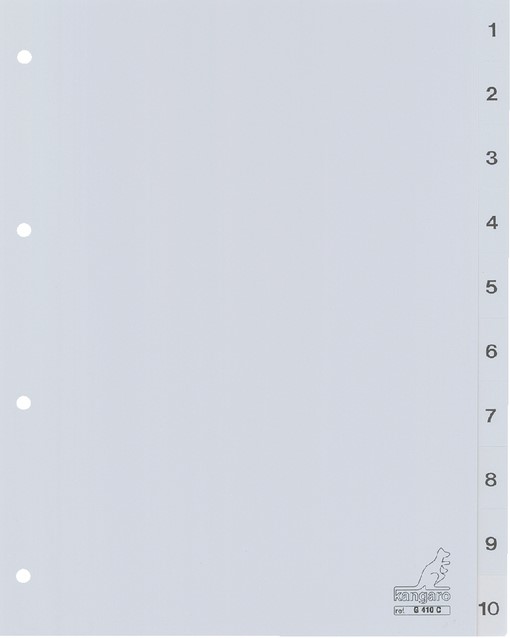 Tabbladen Kangaro 4-gaats G410C 1-10 genummerd grijs PP