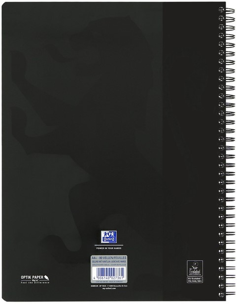 Collegeblok Oxford School A4+ lijn 23-gaats 160 pagina's 80gr zwart