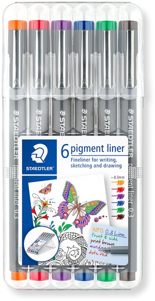 Fineliner Staedtler Pigment 308 0.3mm set à 6st assorti