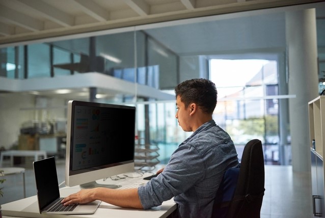 • 3M™ Privacy Filters bieden premium privacy van zijaanzichten buiten de frontale kijkhoek van 60 graden, terwijl ze een superieure kijkervaring bieden vanuit een direct zicht. U kunt kiezen tussen een glanzende en matte zijde om reflecties te verminderen en vingerafdrukken te verbergen, zodat u kunt genieten van een helder beeld.