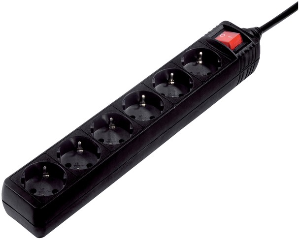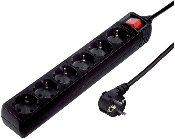 Stekkerdoos Hama 6-voudig beveiligd 5m zwart