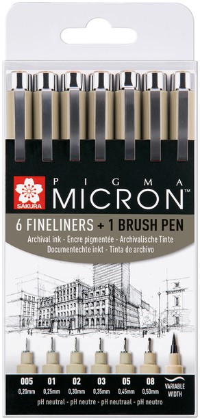 Fineliner Sakura Pigma Micron ass + brushpen zwart