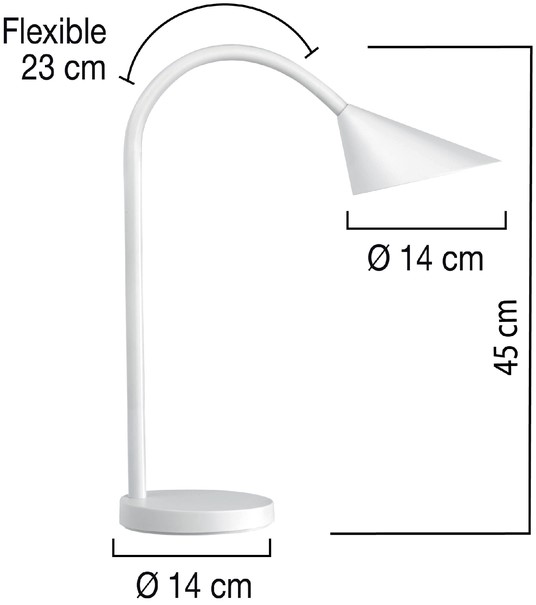 • De vorm van de lampenkap zorgt voor een goede lichtverspreiding op de werkplek.
