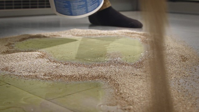 • De korrels blijven in een vaste vorm waardoor ze direct een anti slip laag vormen over de gemorste vlekken. De korrels zijn geschikt voor zowel grote als kleine vlekken.