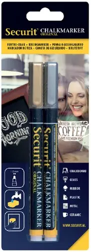 Krijtstift Securit SMA-100 rond 1-2mm goud/zilver assorti 2 stuks