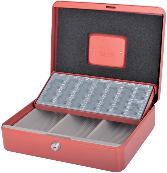 Geldkist Pavo met muntsorteerbak 300x240x90mm rood