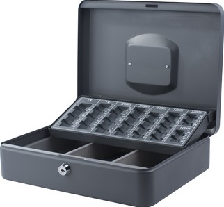 Geldkist Pavo met muntsorteerbak 300x240x90mm grijs