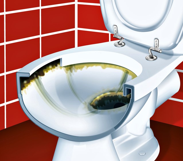 • Deze doet zich niet alleen voor aan de binnenzijde van de toiletpot, maar ook in de hals van het toilet of onzichtbaar onder de rand.