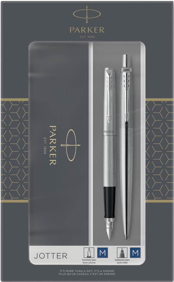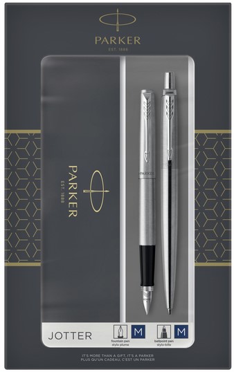 Balpen en vulpen Parker Jotter stainless steel CT medium 2 stuks