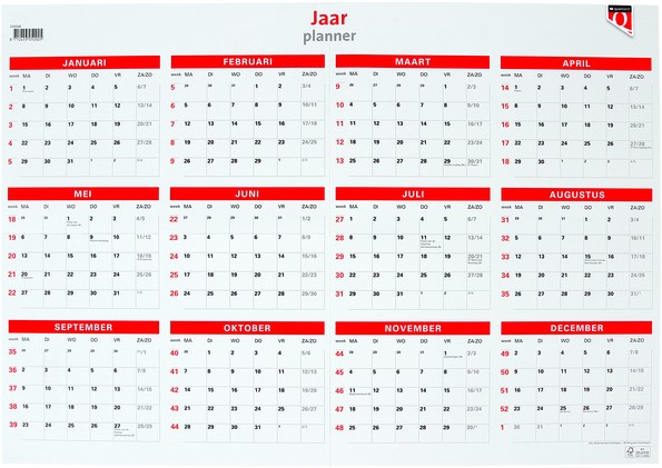 • De Quantore jaarplankalender 2026 48x68cm is de perfecte keuze voor iedereen die overzicht en structuur wil in het plannen van een heel jaar. Dankzij het grote formaat van 48x68cm zie je in één oogopslag belangrijke data, ideaal voor het organiseren van personeelsbezetting, ATV- en vakantiedagen. Gemaakt van stevig 170 grams papier blijft deze kalender het hele jaar netjes en goed leesbaar. De kalender is FSC-gecertificeerd, wat garant staat voor een milieubewuste keuze. Let op: de weergegeven kalender is slechts ter illustratie – de daadwerkelijke data kunnen afwijken.Kenmerken: